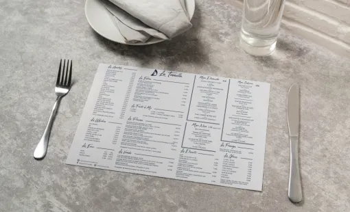 Réalisation des sets de table pour le restaurant La Tonnelle à Saint-Cyprien : cette prestation a été récemment assurée avec soin par Impulse Communication.