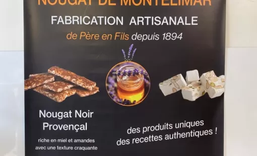 Impulse Communiction a effectué la réalisation de plusieurs bâches ou banderoles publicitaires pour les évènements de l'Atelier du Nougat à Saint-Cyprien et ses alentours.